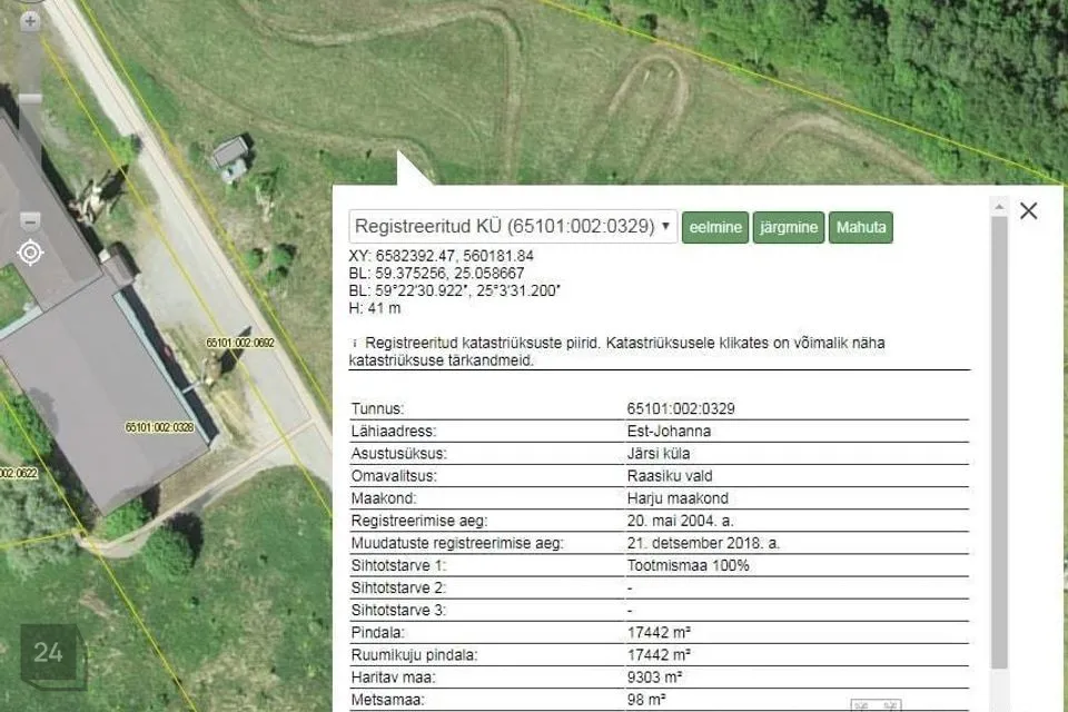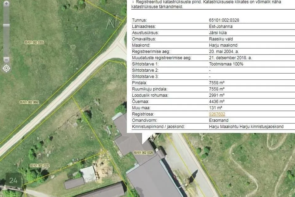 2 kinnistut: 7558 m2 hoonetega ja 17442 m2. Tootmismaa 100%.