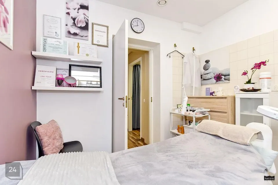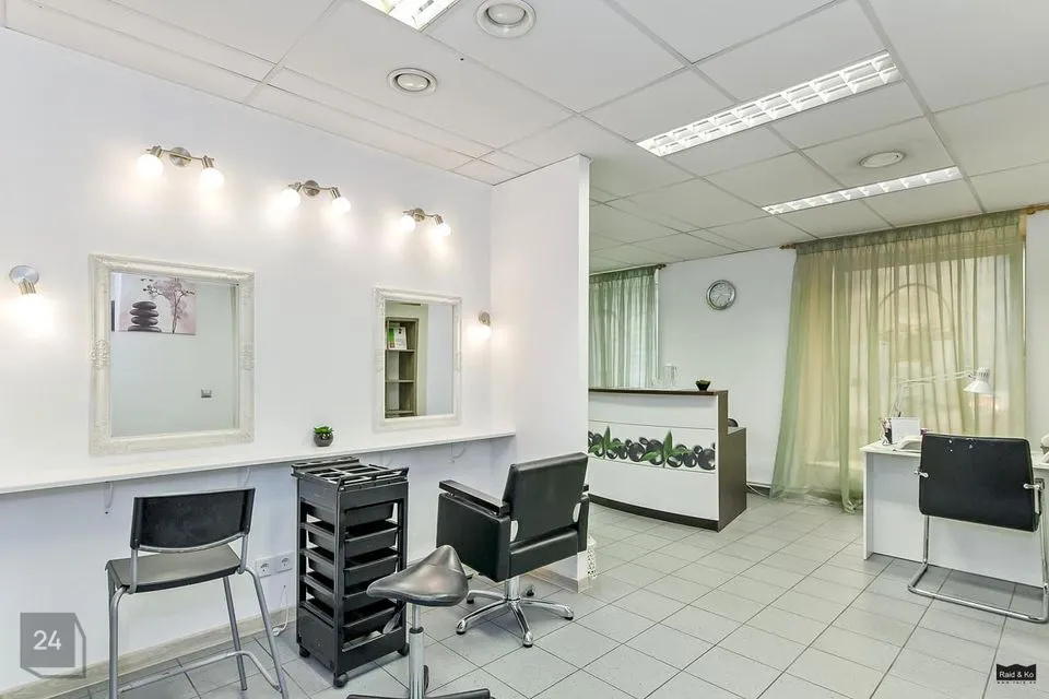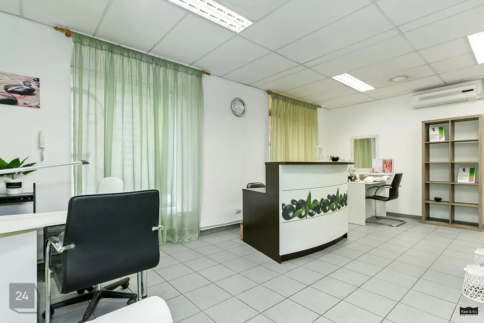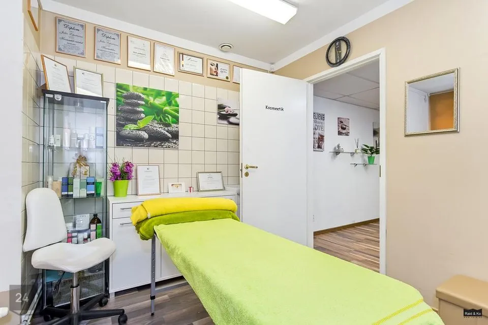 Valgusküllane ja rahuldava hubase atmosfääriga ilusalong. Suured vitriiniaknad. Ruumid on täielikult sisustatud ja möbleeritud, iga tuba varustatud veega.