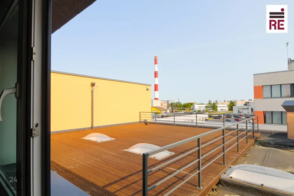 Üüritaval pinnal on olemas sundventilatsioon. Planeeringult on tegu avatud kontoriga, mille juurde kuulub oma kööginurk ja katuseterrass.