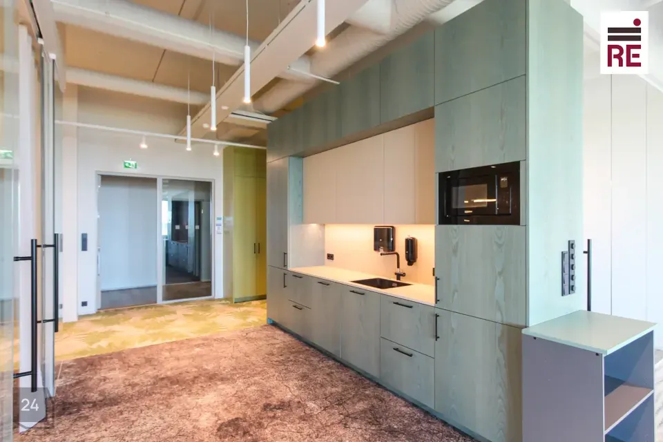 Büroos on korraliku köögimööbli ja -tehnikaga varustatud puhkeala ning olmeruumid.