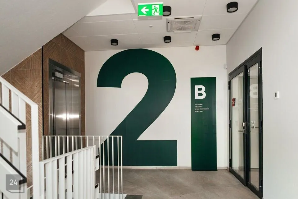 2. korrusel on erinevad kaubandus-, teenindus- ja toitlustuspinnad. Samuti leiab 2. korruselt 24/7 fitness jõusaali. Kahe hoonemahu vahel on suur terrassiala.
