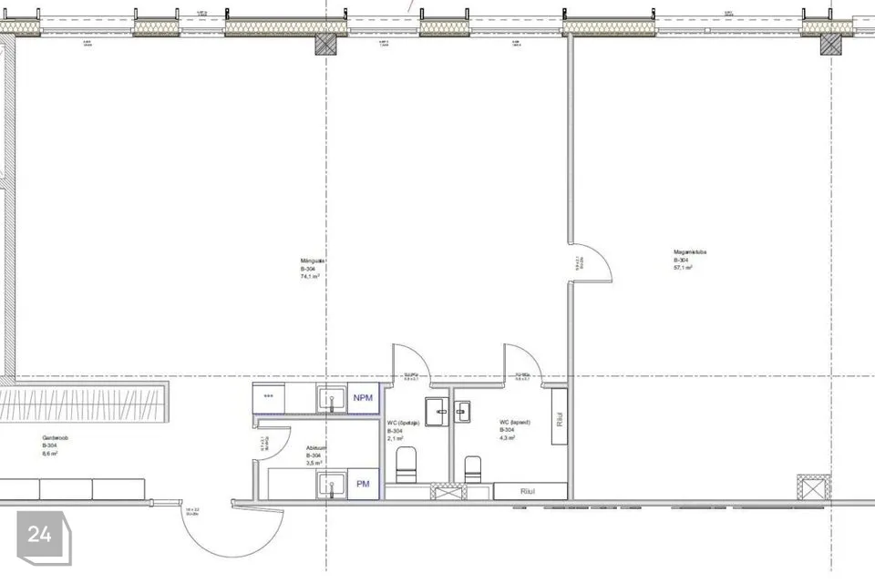 Avar ruum kalasaba parketi ning suurte valgusküllaste akendega paikneb maja põhjapoolsel küljel, kust on vaade metsa ning Klooga maantee poole. Ruumi suurus on 57,1 m2. Kaasaegne ventilatsioonisüsteem tagab suurepärase õhuringluse ning läbimõeldud valgustuse paiknemine meeldiva töökeskkonna. Ruumi saab kasutada nii büroona kui ka teeninduspinnana. Ruumi juurde on võimalik väiksema ümberehituse tulemusel lisada privaatne tualettruum.