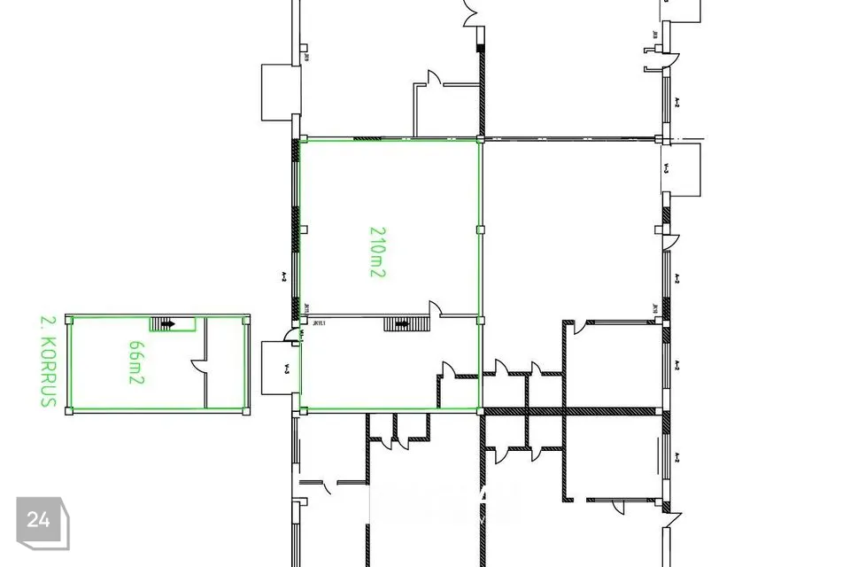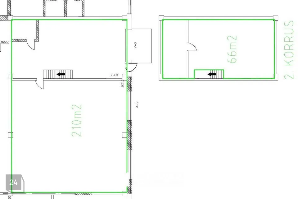 Üldpindala 276 m2. Alumisel tasapinnal (210 m2) on 3 ruumi - endine kauplus-tellimuste vastuvõtt, laoruum ja pesuruum-wc. Ülemisel tasapinnal (66 m2) on kontor ja puhkeruum, mille eest eraldi üüritasu ei pea maksma!