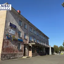 Pind asub esimesel korrusel vitriin akendega staliniaegsses majas.