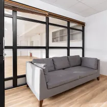 The room on the 1st floor is spacious and bright. Customers have access from the main door on the Central Square side. The tenant has access from the back of the house, where the windows of the room also open.