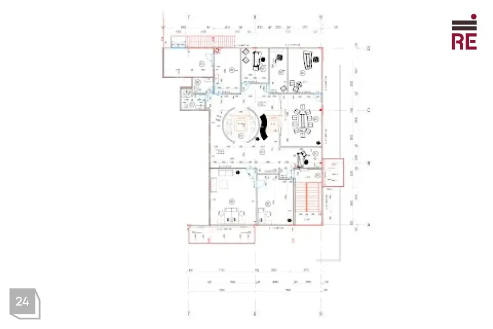 Üüritav 254 m² pind asub hoone teisel korrusel. Pakutav pind koosneb kuuest kabinetist, nõupidamisteruumist, puhkealast ja eraldi köögialast.