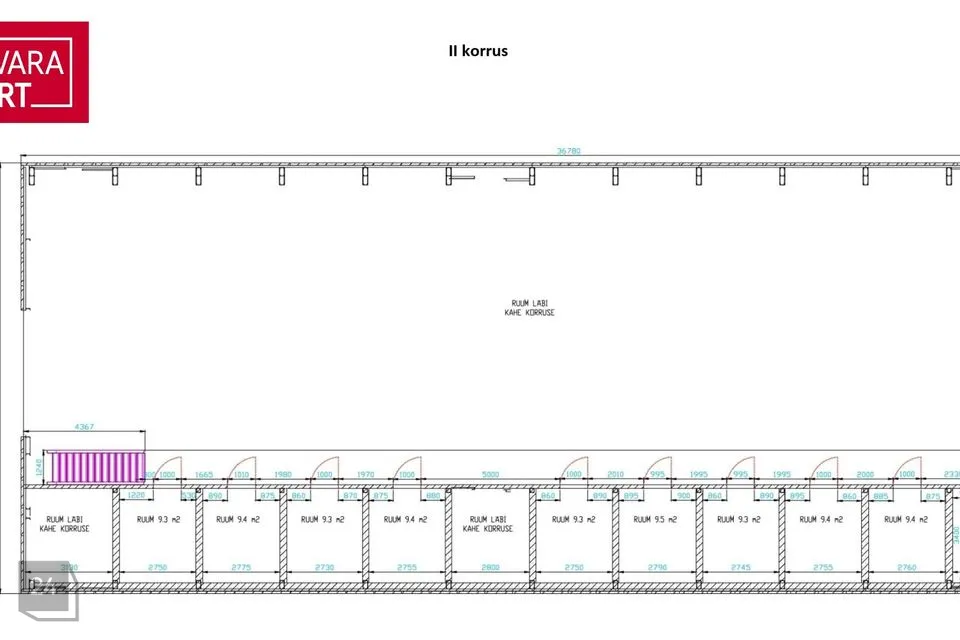 Hoone ühes servas asuvad I korrusel eraldi tõsteustega boksid suurusega 9 - 19 m2 ning teisel korrusel lisaks 10 eraldi ruumi suurusega 9,3 m2. Esimesel korrusel ka olmeruumid, kus olemas põrandaküte ja ühes ruumis ka õhksoojuspump.