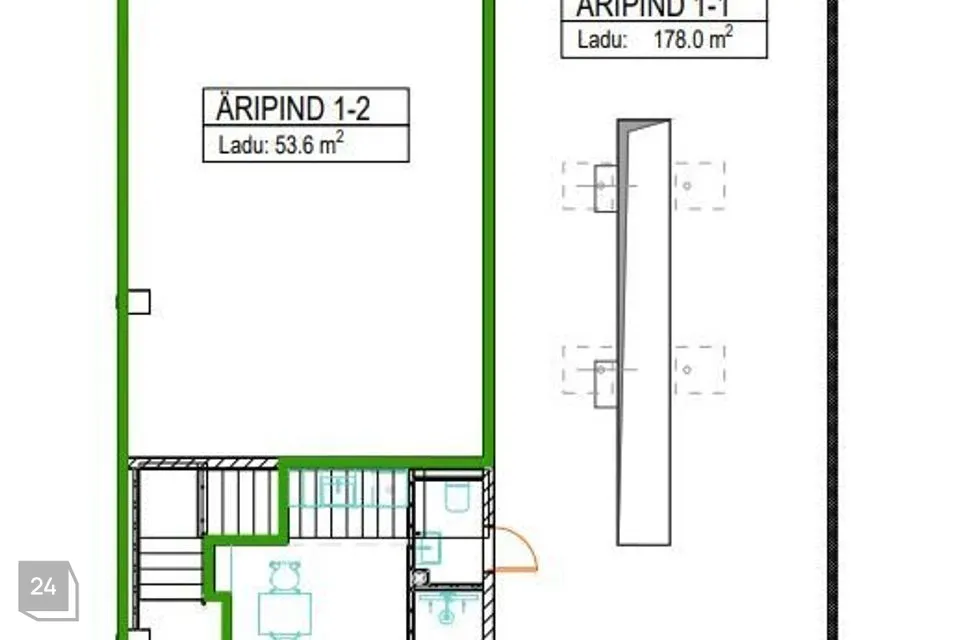 Anname Kärmu 1 ärihoones üürile äripinna kogupinnaga 106,4 m2, millest 53,6 m2 moodustavad laoruumid ning 52,8 m2 eraldi sissepääsuga büroo- või esindusruumid.