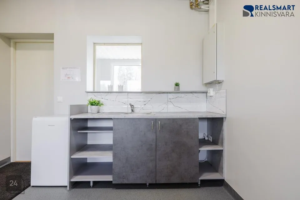 Olmeruumide seas on kohe büroost tulles paremat kätt eraldi tualettruum ja vasakut kätt puhke- ja kööginurk, mida saavad siis uued rentnikud ise vastavalt oma soovidele sisustada.