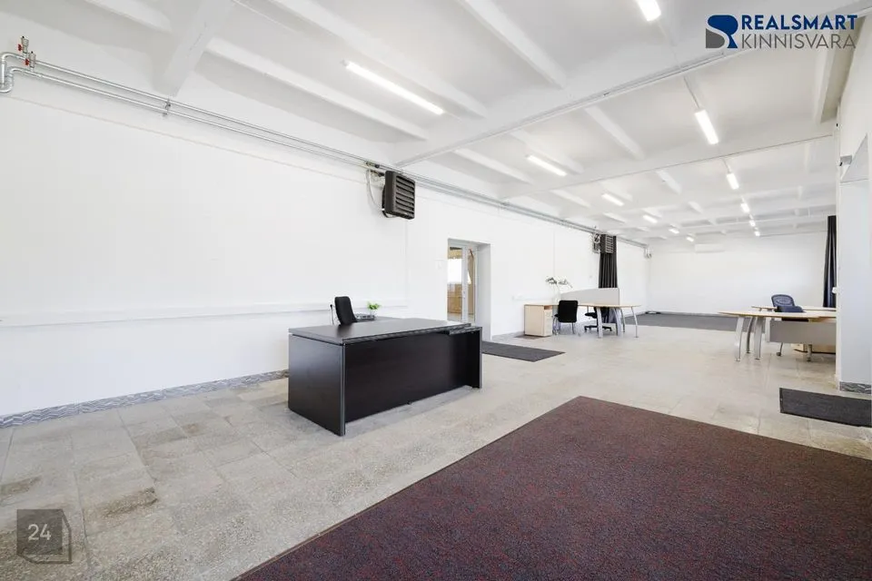 Kaubandushoone netopinnaks on kokku 610m². Hoones on kokku 120 m² büroopinda, millele lisanduvad olmeruumid 40 m² ja kinnine lao-ja tootmispind (angaar) 450 m². Lisaks on võimalik rentida majatagusel alal ja kinnisel territooriumil välitingimustes ladustamispinda. Parkimine kinnistul on tasuta.