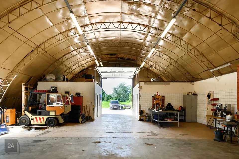 Suurel kinnistul kaks angaari. Suuremas, plekkprofiilist angaaris on olnud varem akende-uste tootmine.
