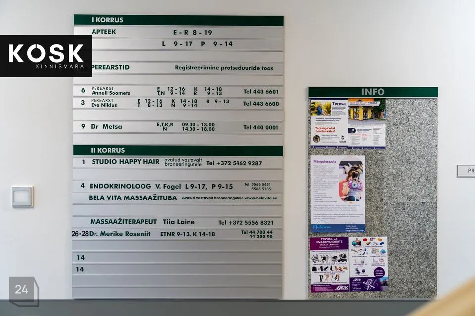 Hoone teisel korrusel asub 29 m2 suurune privaatne kabinet. Kabinetis wc ja pesemisvõimalus. Majal on üldine valvesüsteem, võimalik lisada äripinnapõhine valve. Külmemate ilmadega annab sooja Pipewave – praktiline infrapuna küttekeha. Olemas internetivalmidus. Piltidel olev mööbel ei jää sisse. Ruumid vabastatakse 01.10.25.