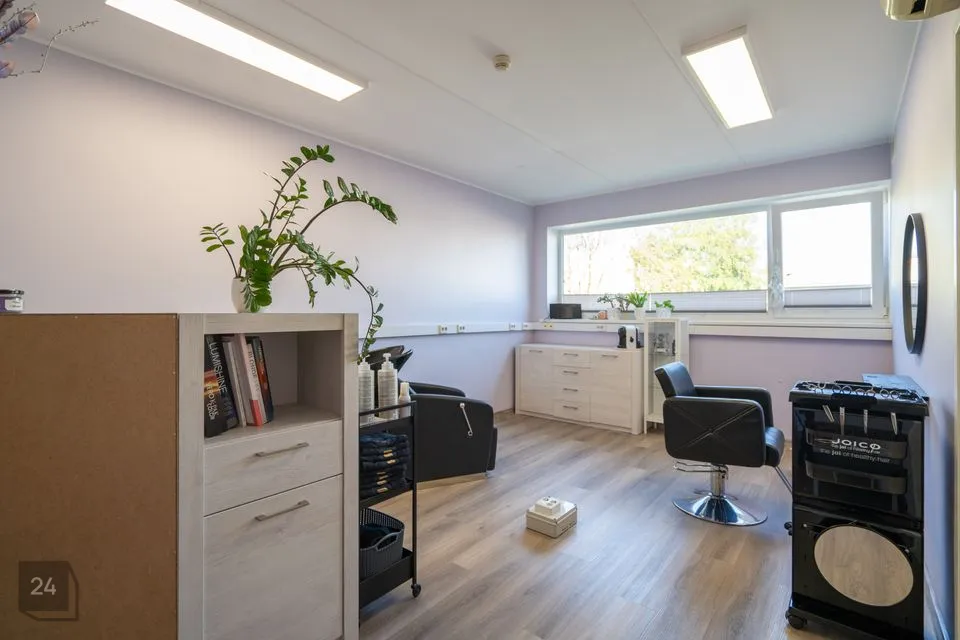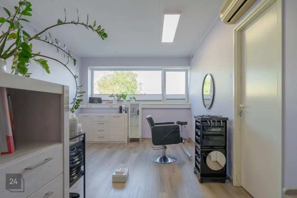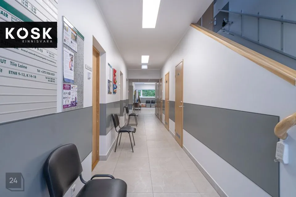 Hoone teisel korrusel asub 19,3 m2 suurune privaatne kabinet, mille juurde kuulub 2,8 m2 suurune ladu. Majal on üldine valvesüsteem, võimalik lisada äripinnapõhine valve. Külmemate ilmadega annab sooja õhksoojuspump. Olemas internetivalmidus. Ruumide vabastamise 01.10.2025.