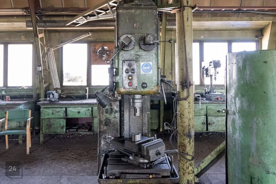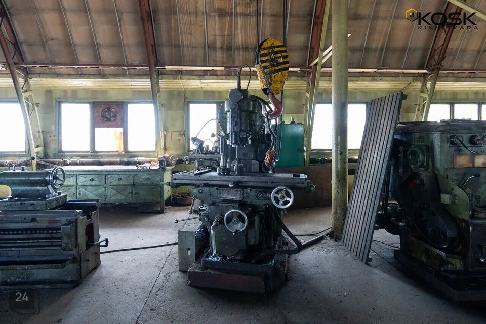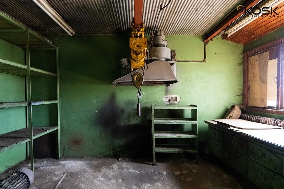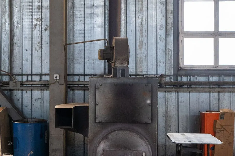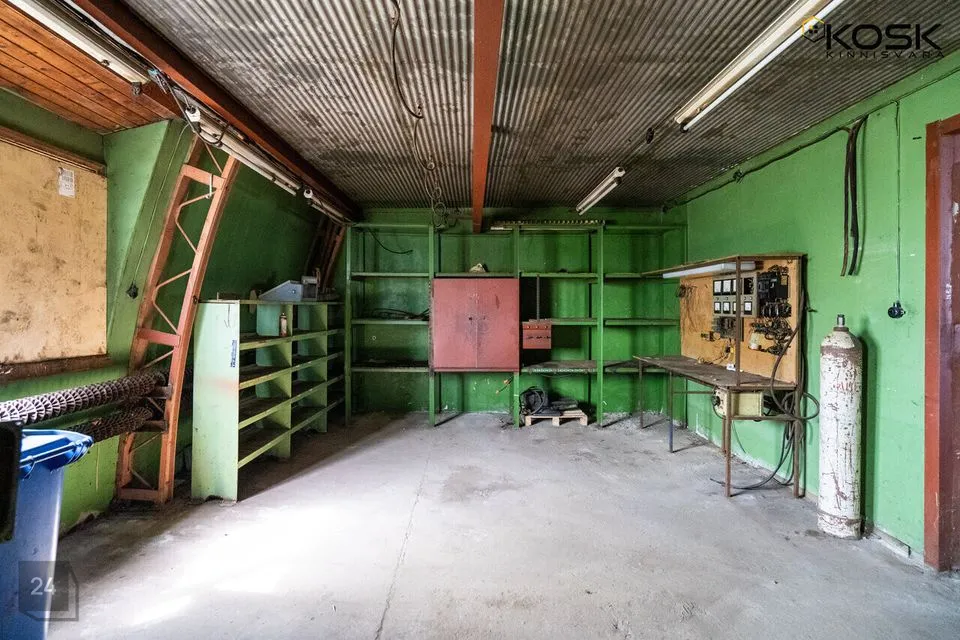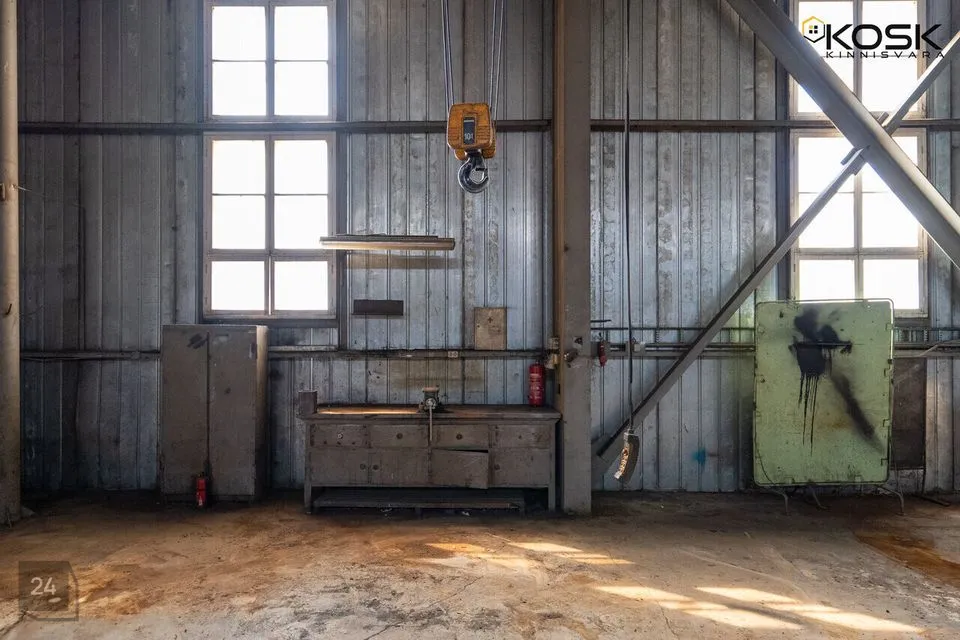 Viilkatusega angaar on 6m laekõrgusega ja betoonpõrandaga. Angaari mõlemast otsast pääseb sisse läbi 4,5x4,5 tõsteukse. Terve hoone pikkuses on 10T telfer kraana, kasuliku töökõrgusega 5m. Angaar on varustatud 160A peakaitsmega. Hoone kütab ära tahke küttega ahi.