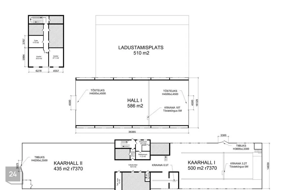 Kompleksi teine hoone koosneb kahest kaarhallist, mis on eraldatud kontoriosaga. Kogu tootmispind on betoonpõrandaga. Kaarhall I on varustatud 3,2t telfer kraanaga mille kasulik töökõrgus on 5m ja 0,5T kraanaga mis paikneb tööruumides. Sissepääs on kontorikompleksist ja territooriumi poolsest H3,5 L3,5 laadimisuksest. Kaarhall II sissepääs on kontorikompleksist ja Emajõe tn poolsest H4,2m L3,5m laadimisuksest. Hoone on varustatud 200A peakaitsmega.