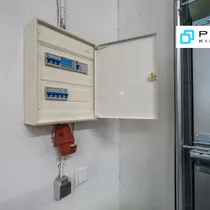 Ruumis on õhksoojuspump, elektrikilp ja valgustus.