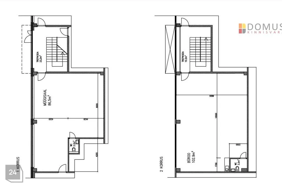 -Esimesel korrusel olev 88,7 m² teenindus/kontoriruum. WC olemas.