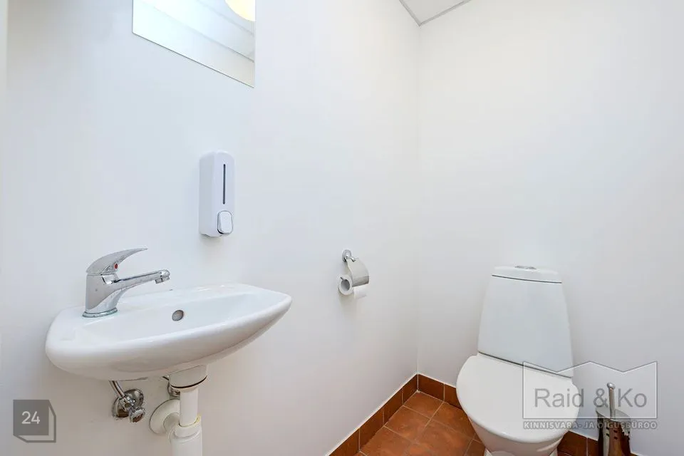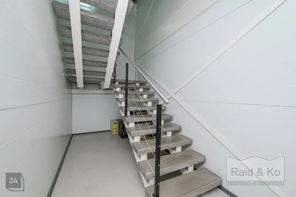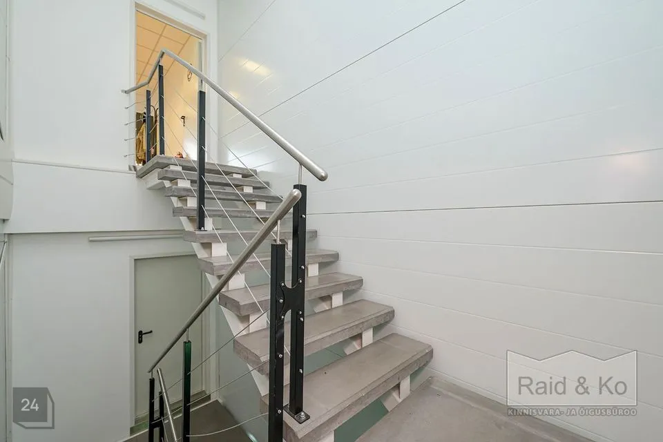 Esimesel korrusel on kaasaegne showroom 47 m2 ja ladu 214 m2 koos WC ja duširuumiga.