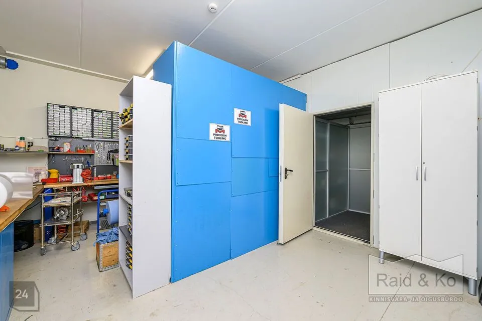 Laoruum on kergesti ligipääsetav ka suurtele autodele. Uks avaneb maja taha.