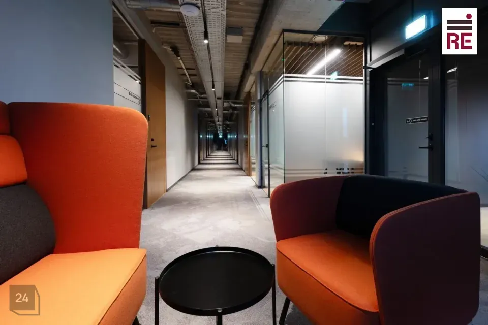 * Büroopindade üürnikele on ühiskasutuses igal korrusel asuvad kaasaegse tehnikaga varustatud nõupidamisruumid, täisvarustuses köök koos puhkealaga, tualetid ning duširuumid.