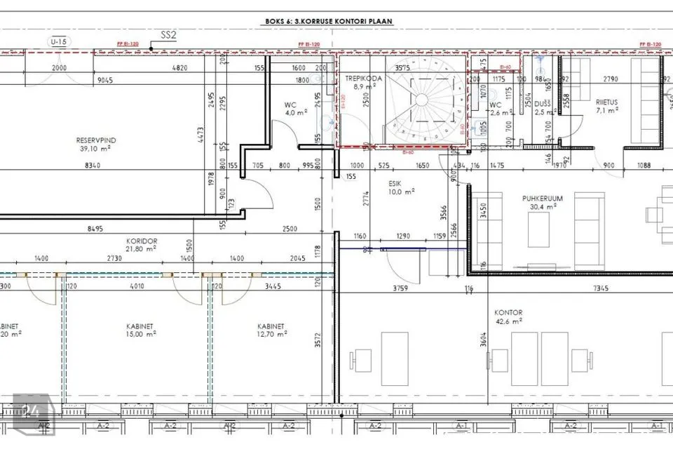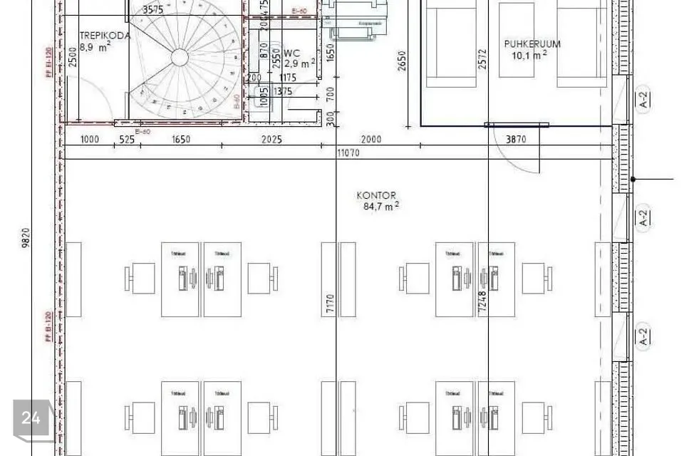 Teisel korrusel on avatud kontoripind ja koosolekuteruum 94,8m². Lisaks wc.