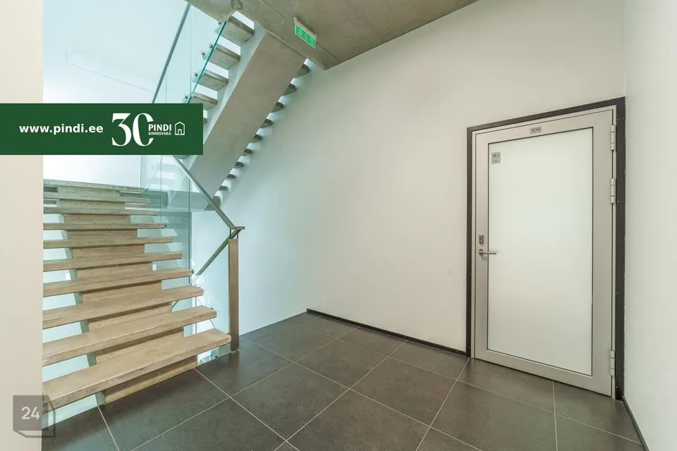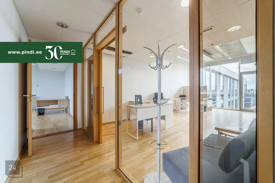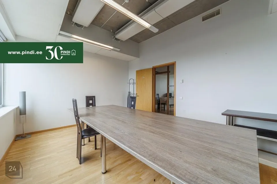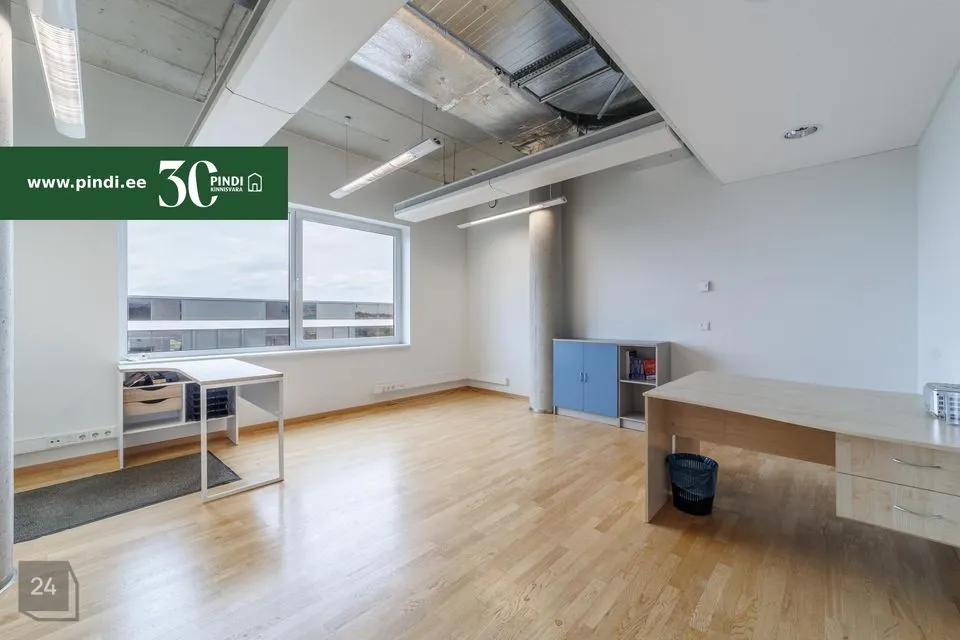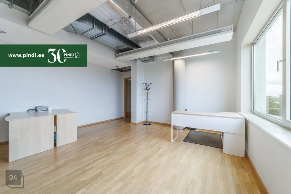 Üürile anda modernse arhitektuuriga hoones büroopind. Büroopind asub kolmandal korrusel vaatega päikeselise terrassile. Ruumil on kõrge lagi ja suur aken ning palju valgust. Põrandal on täispuidust parkett ja seinad on värvitud. Büroopinnal on oma wc.