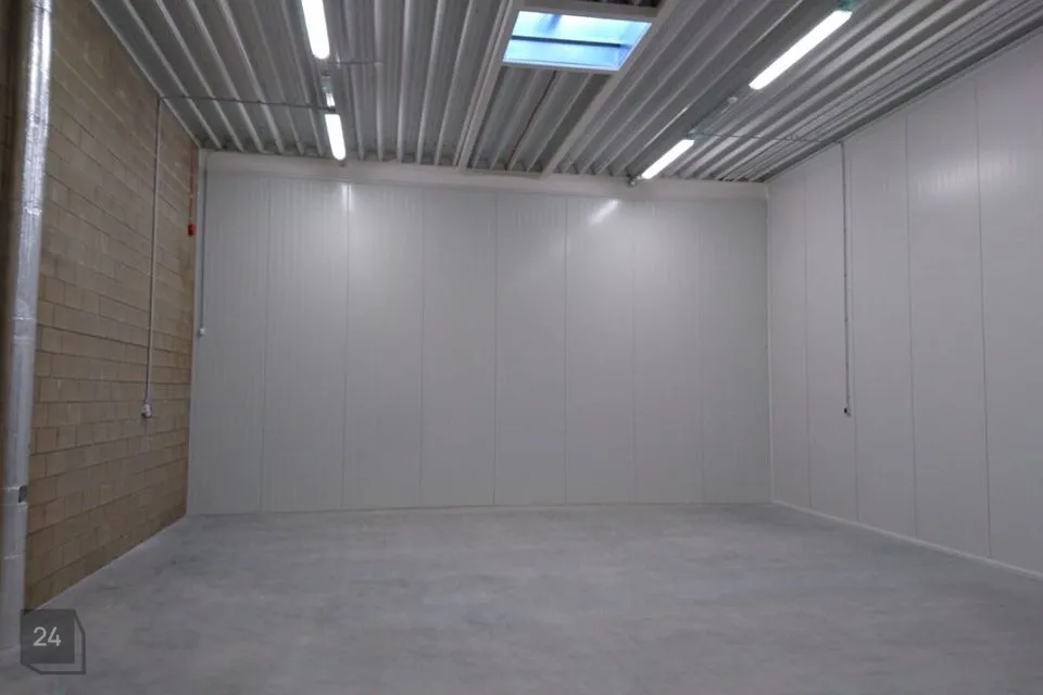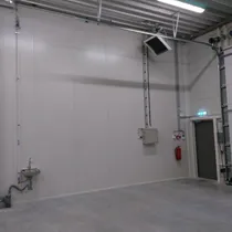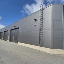 The space consists of one room with dimensions 8.68m wide and 13.6m deep. Room height is 4.8m. The space has a ground-level loading door with dimensions 6m wide x 4.2m high. Gas heating. The building is insulated with 160mm sandwich-type panels, which makes the building very heat-retaining. LED lighting. Option to install a logo on the building. Possible to build washing/changing rooms according to preference.