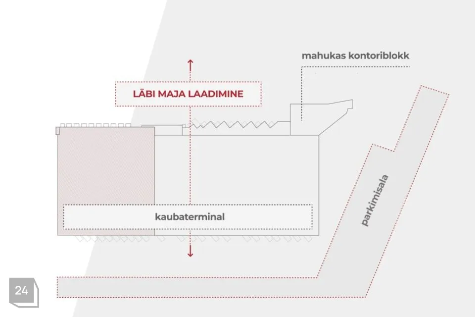 Haagised ja veoautod mahuvad hoonet ümbritseval avaral alal mugavalt manööverdama ja parkima.