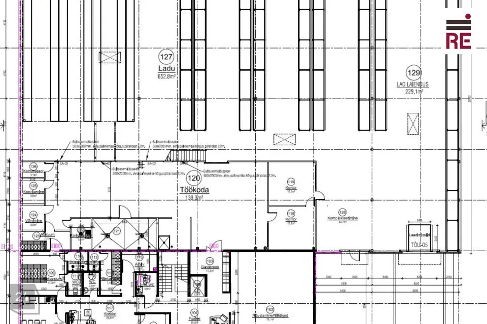 Üürile on pakkuda eraldiseisev hoone kogupinnaga ca 2035,4 m². Lao- või tootmisfunktsiooniga ruumi põrandapinna suurus I korrusel on ca 926,6 m² (kõrgus 7 m).