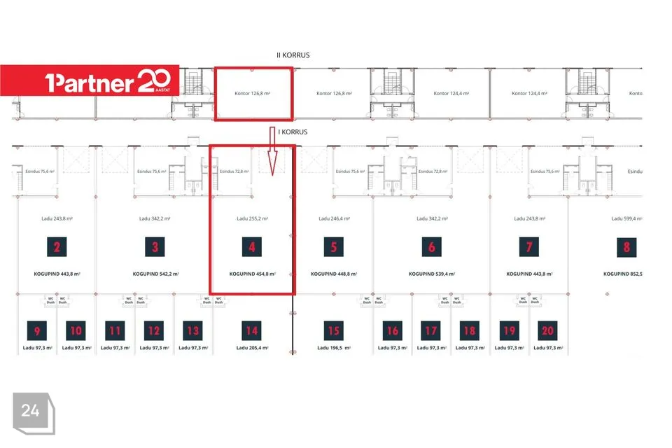 Üldpind 454,8m² sh I korrus 327m² ja II korrus kontor 126,8m².