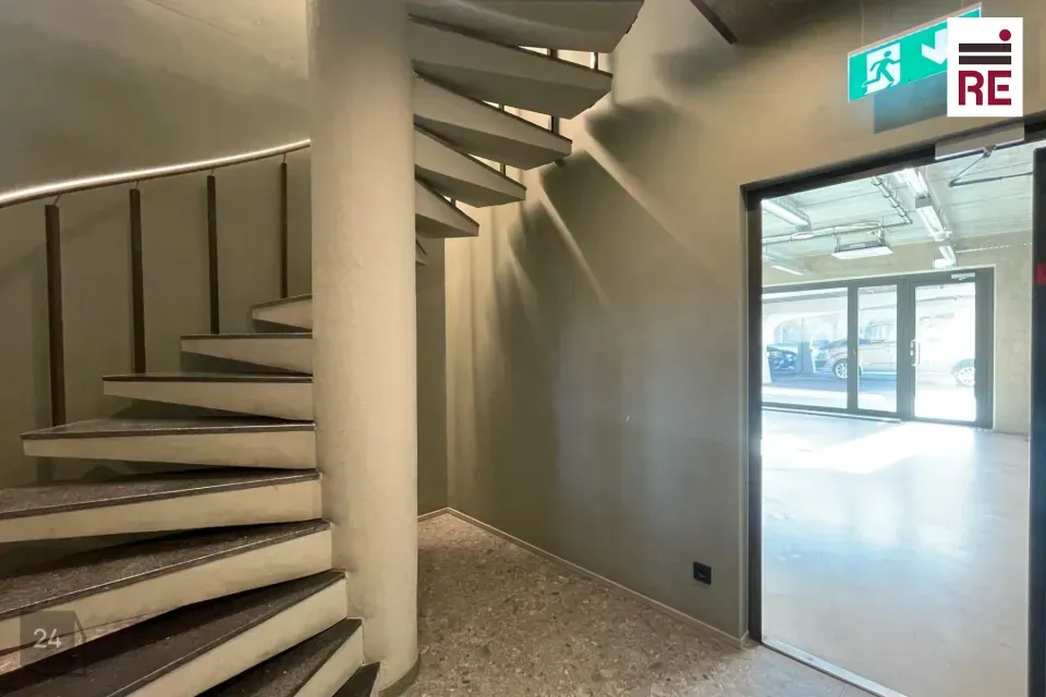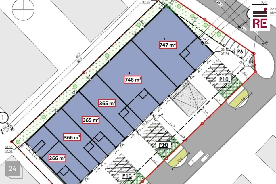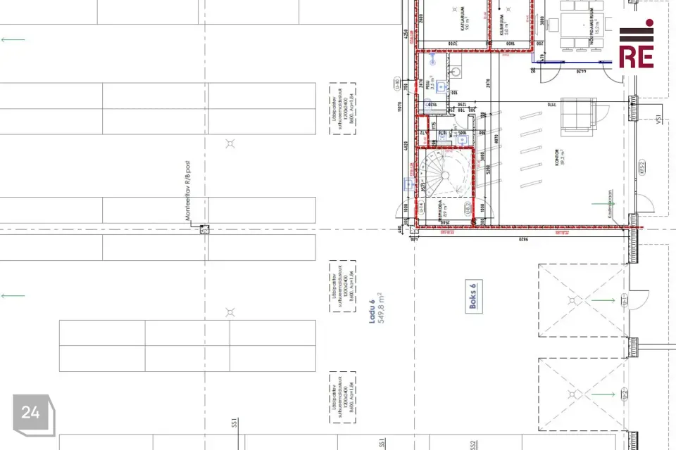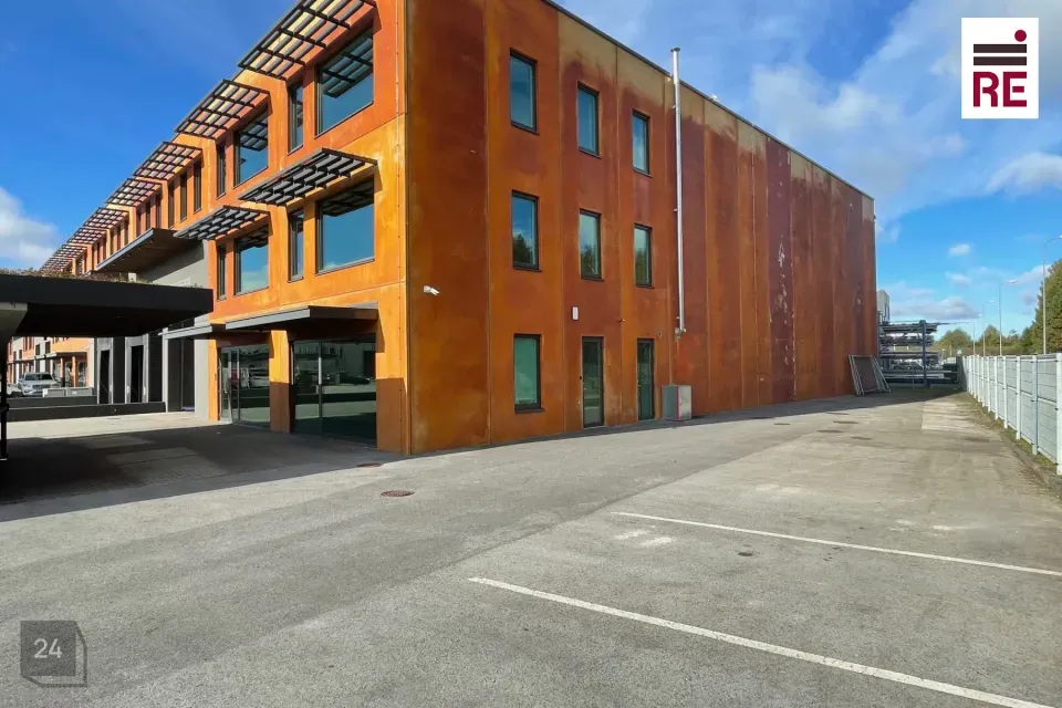 Üüripinna suurus on kokku 956 m². Pinnal on 550 m² ladu, 80 m² kaubandus- ja/või teeninduspind esimesel korrusel, 97 m² suurune büroo teisel korrusel, ca 129 m² büroo, abi- ja olmeruumid (sh puhke- ja riietusruum ning dušš) kolmandal korrusel. Igal korrusel on tualett. I korrusele võimalik luua pesuvõimalus.