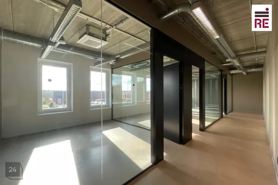 - Kontori viimistluses kasutatud naturaalseid materjale nagu betoon ja puit. Siseseinad on valdavalt klaasist.