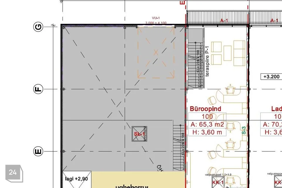 II korrusel kontor, kööginurk ja WC 65,3 m2