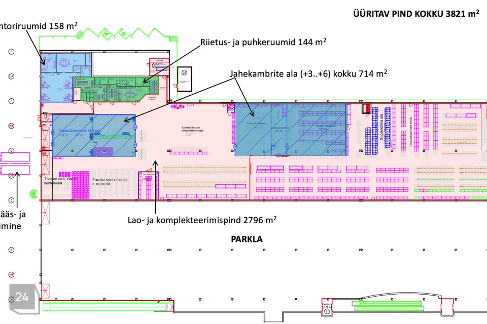 Üüritava pinna suurus on kokku 3821 m2, millest: