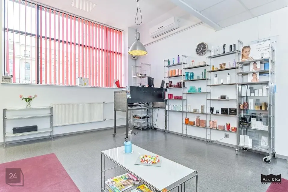 Valgusküllane ja avara mugava planeeringuga ilusalong. Suured vitriiniaknad. Ruumid on täielikult sisustatud ja möbleeritud. Kaubamärgid: Lóreal, Kerastase, Academie.