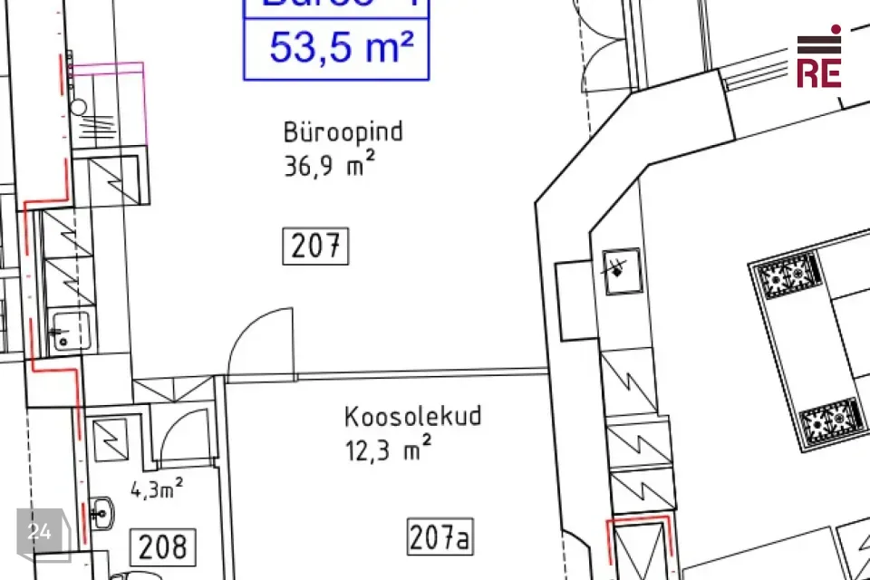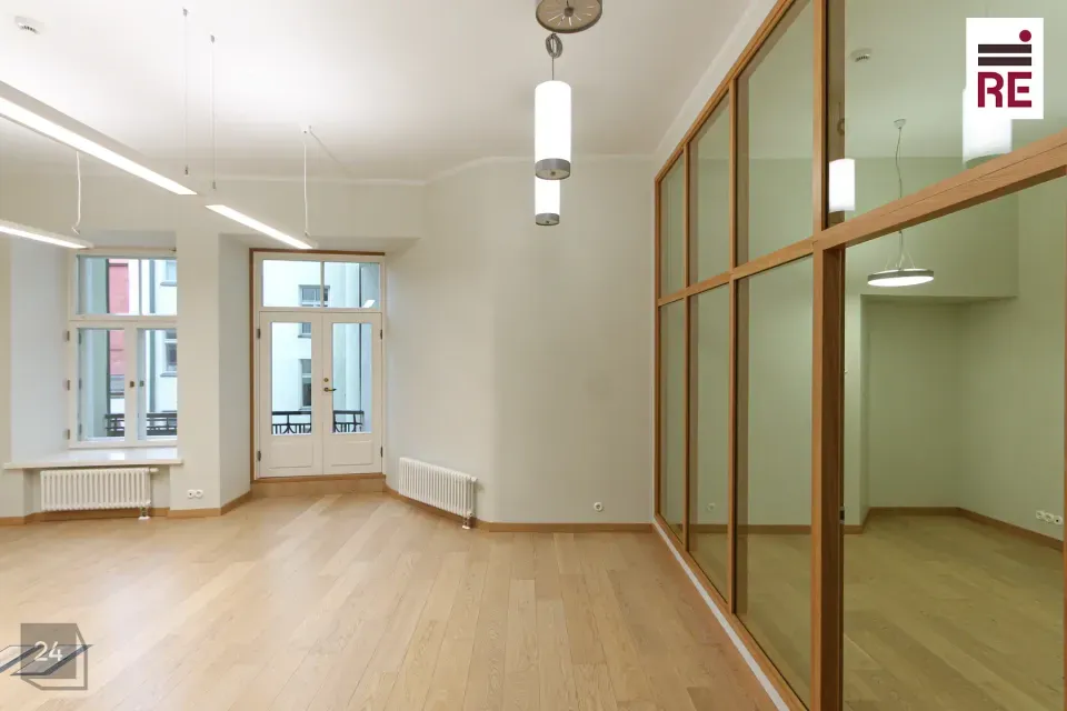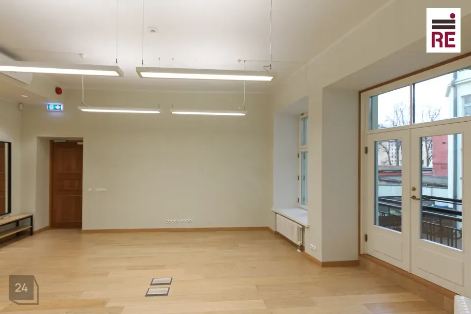 Ruumid on vabad ja väga heas seisukorras. Pinnal on klaasseinaga nõupidamisteruum ja avatud kontor. Lisaks ka tualett ja dušš ning kööginurk. Pinnaga kaasneb privaatne sisehooovi poolne rõdu. Ruumide plaani leiate pakkumise galeriist.