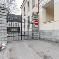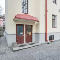 Sissepääs on hoovi poolt. Aknad on vaatega Estonia pst poole.