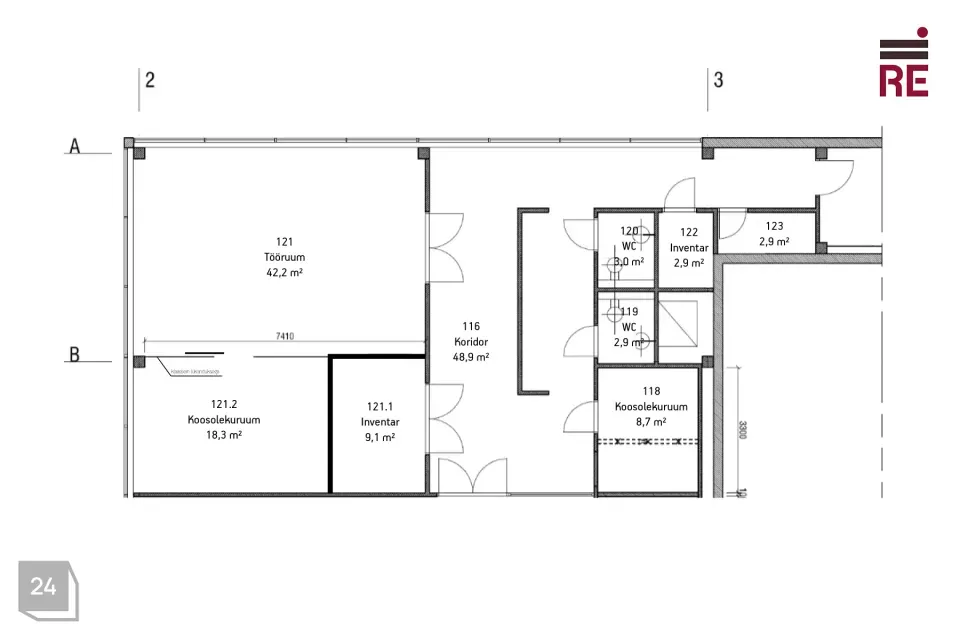 Äripinnal asub neli eraldi tööruumi, lisaks kaks tualettruumi. Ruumide plaan on leitav pakkumise piltide galeriist.