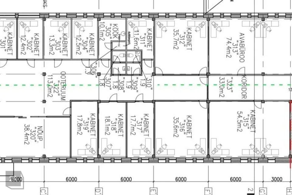 18,1m2 suurune kontor asub maja kolmandal korrusel.