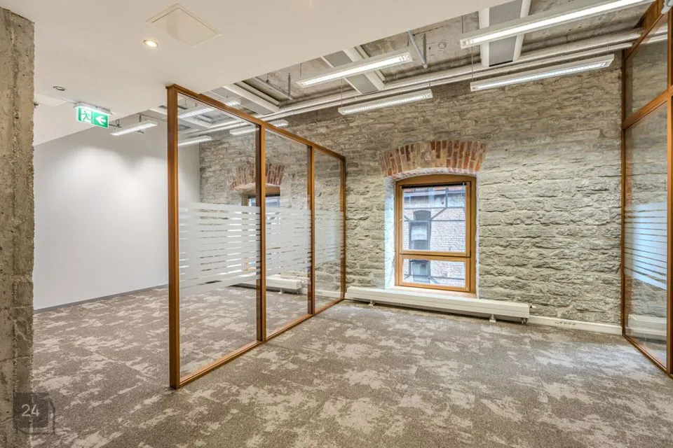 See on hubane ja esinduslik tööruum, kus ajalooline arhitektuur ja kaasaegsed lahendused loovad inspireeriva töökeskkonna.