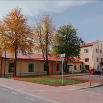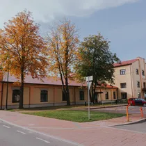 Asub nähtaval kohal otse ühistranspordi peatuse kõrval.
