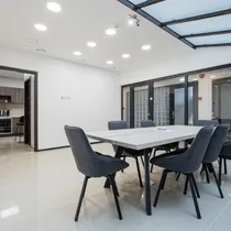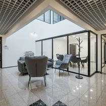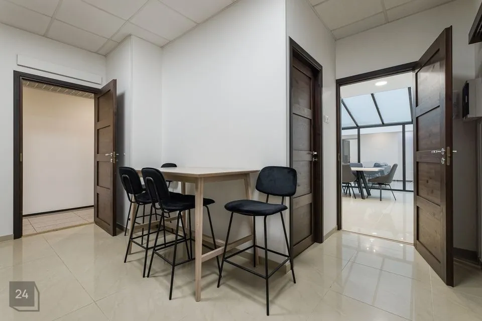 Üüritava pinna koossesisu kuulub aatriumiga hall/puhkeruum, 5 erineva suurusega kabinetti (21,6 m2, 20,8m2, 20,8 m2, 23,2 m2, 37,8m2), nõupidamiste ruum, kõõk koos köögimööbliga ja wc.