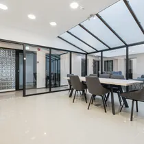 Kõik pinnad on suurte akendega, avarad ja valgusküllased.