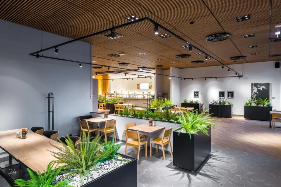 • Esimesel korrusel äri- ja teeninduspinnad. Samuti asub 1. korrusel hubane Kodugurmee Kohvik, mis pakub nii hommiku- kui ka lõunasööki, samuti on see sobiv paik vabamaks kohtumiseks. Soovi korral osutab Kodugurmee Kohvik ka catering-teenust büroos kohapeal ja üürib oma ruume ürituste korraldamiseks.