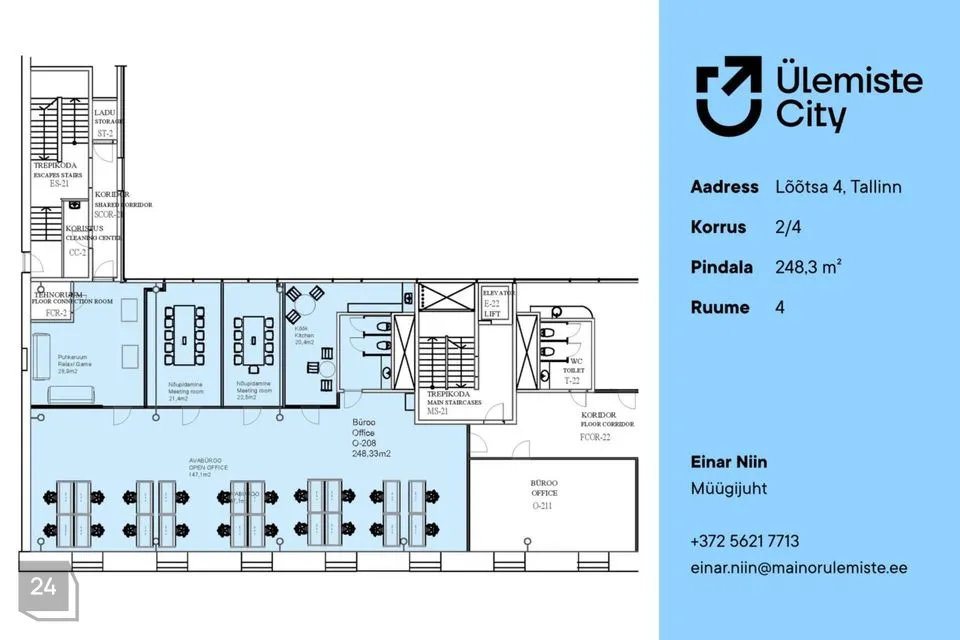 Üürile anda avar köögi- ja puhkenurgaga büroopind Lõõtsa 4 hoone 2. korrusel.