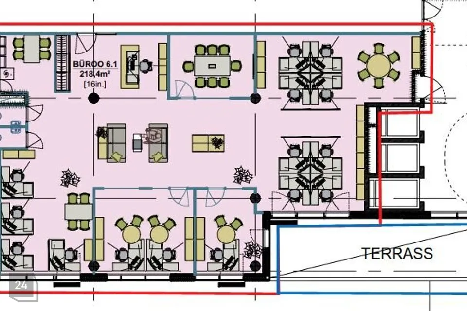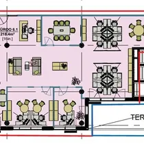 Planeeringus sisalduvad 2 kabinetti, 1 koosolekuruum , köögiala, 2 eraldi tualetti. Ülejäänud büroo on lahendatud avatud töökohtadena.