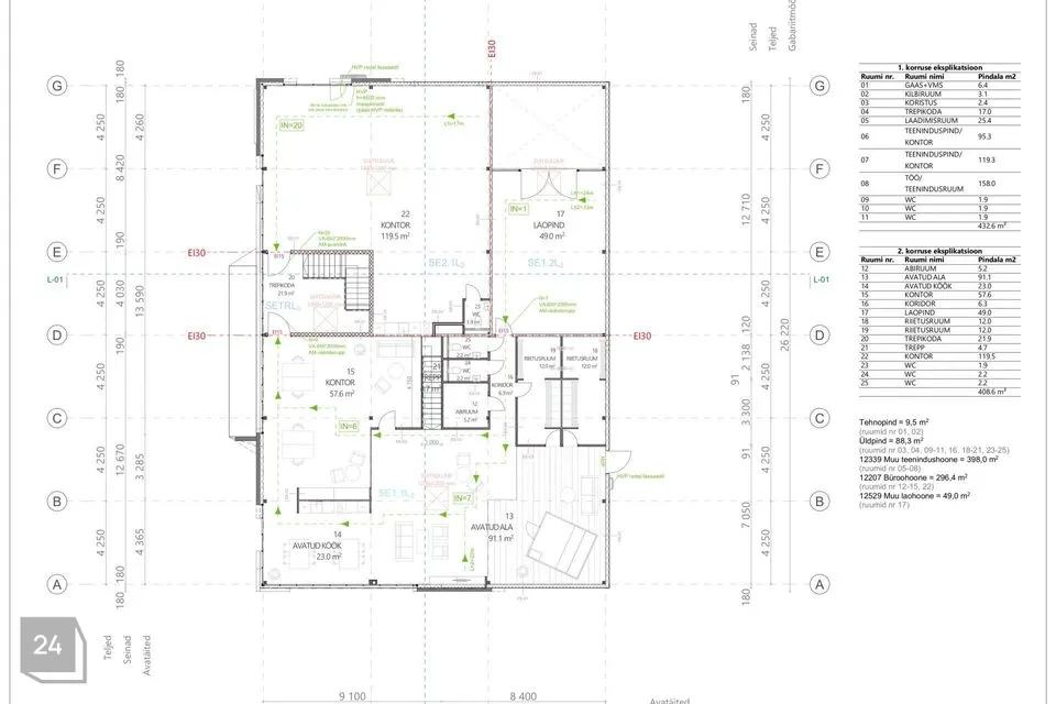 Teine korrus: 408,6 m² – sobilik kontori-, müügi- ja halduspindadeks.