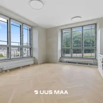• Suured aknad kahes suunas - 3,2 m lagede kõrgus ja hele kalasabaparkett muudavad pinna esinduslikuks, valgusküllaseks ja avaraks.