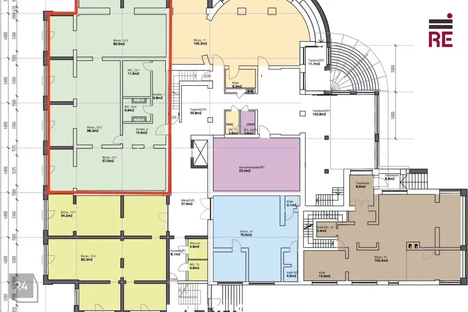 Ruum kogupinnaga 253 m² asub teisel korrusel. Büroos on seitse erineva suurusega kabinetti, vastuvõtuala, nõupidamisteruum, kööginurk ja tualetid. Ruumides on sundventilatsioon ja jahutus, aknad on avatavad.
