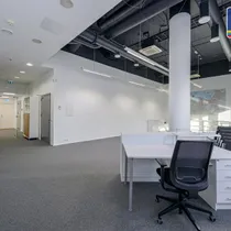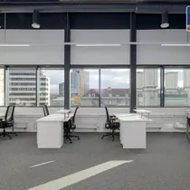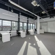 Büroopind asub hoone 5. korrusel. Suurte akendega avaral büroopinnal on avatud töötsoon 1 nõupidamisruum,